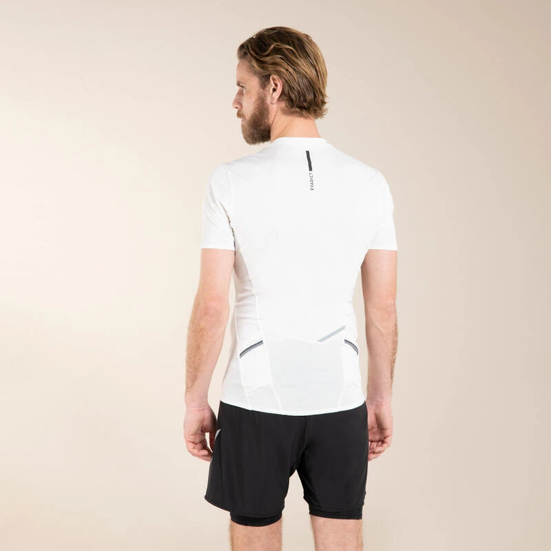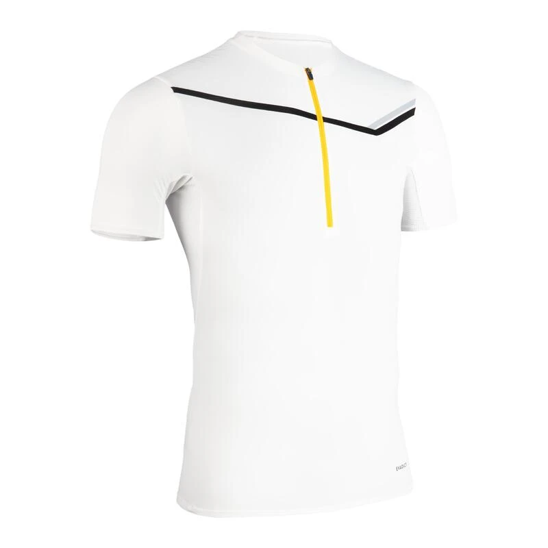 Camiseta Trail Running Hombre Blanco Manga Corta Cremallera