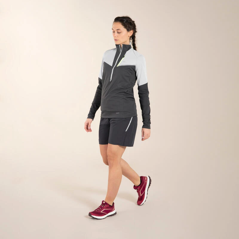 Camiseta Trail Running Mujer Gris Softshell Manga Larga